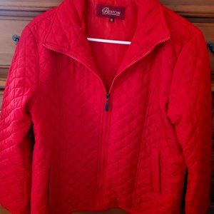 Bestow quilted jacket. Jacket is lightweight with front zip closure, slant pockets.