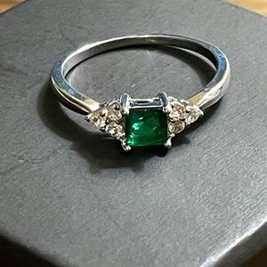 WOMEN'S RING WITH GREEN ZIRCONIA AND SMALL WHITE DIAMONDS