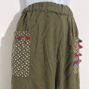 Women’s Retro Ethnic Style Patchwork Elastic Waist Loose Wide Leg Linen Pants!