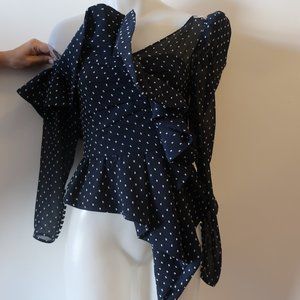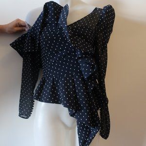 WOMENS SELF-PORTRAIT PLUMETIS FRILL ONE SHOULDER NAVY POLKA DOT BLOUSE TOP 2 * C