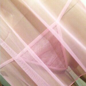 This is a beautiful strapless babydoll with floral lace top and sheer tulle skirt. It features a wide ribbon satin bow to the empire line waist. It comes complete with a matching G-string.