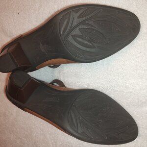 WOMEN'S SIZE 12 "EARTH DAY TRIPPER"" BROWN CUSHIONED LEATHER HEEL ANKLE STRAP