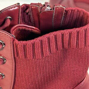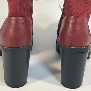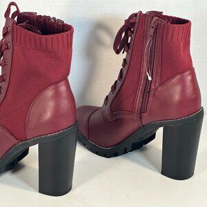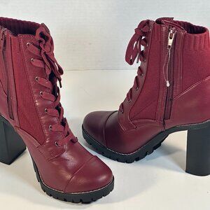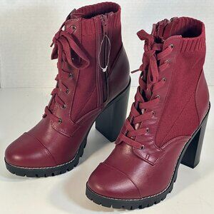 Deep Red, ankle boots with 4" solid heels, seven eyelet lace-up, leather foot