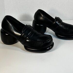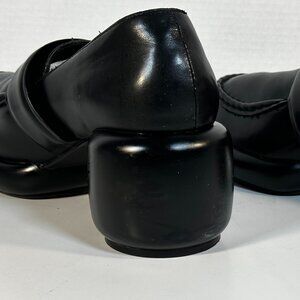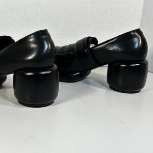 Black slip-ons by Anarchic, Size 9 with 1" soles and 3" Heels, with rounded toe