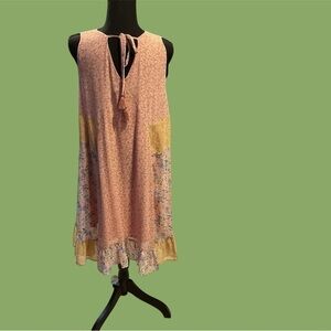 This is a perfect casual dress for around the house or by the pool. Sleeveless size large dress by Gigio, with a patchwork look around the bottom. Very gently worn.