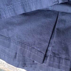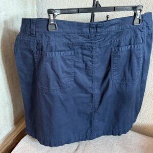This skort is timeless dark blue, near navy, and It has a zipper and button closure at a fitted waist that fits comfortably. There are two flat pockets on the back and two pockets on the front. The length is 18” giving it a sporty look and feel. The waist is 19" flat, so approx 38".