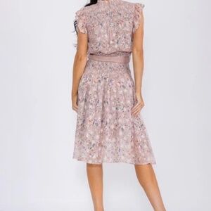 WOMEN'S SLEEVELESS SMOCK BELTED FLORAL PRINT MIDI DRESS IN MAUVE
