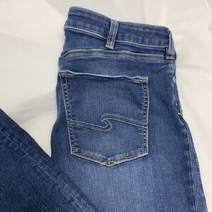 Women’s Silver Blue Bleecker Jean Size 32 x 29. Slight stretch below fly. See photos.