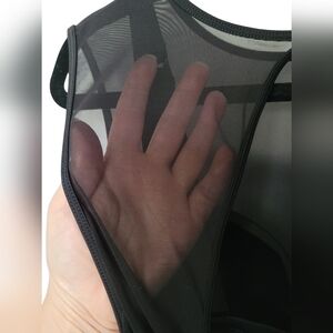 Made with a sheer material overlay, Body of suit features 80% Nylon and 20% spandex. It also features adjustable and removable straps, as well as metal hardware for added durability.