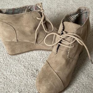 WOMENS TAN SUADE WEDGED ANKLE BOOTS US 7