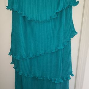 Must have fun and flirty pleated chiffon ruffle dress. A little more green than pictures depict. Dress is lined. Never worn.