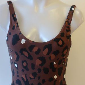 WOMENS THE UPSIDE BROWN BLACK ANIMAL PRINT ONE PIECE SWIMSUIT S *