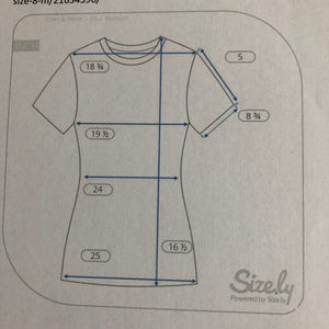 Gently worn a few times (USED). SIZE M. Fabric material = 72 % Raylon + 28 % Nylon. Some measurements according to SIZELY.COM are as follows. FRONTH LENGTH = 23, CHEST = 16 ¾ , HEM = 17.