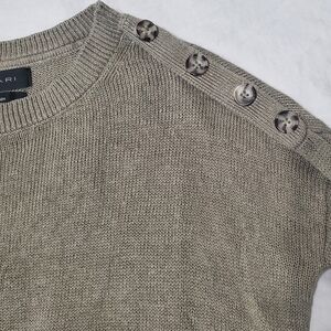WOMEN'S Tahari Linen Sweater Size S Sage Green Crew Neck Pullover Buttons