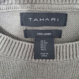 Women's Tahari Linen Sweater Size S Sage Green Crew Neck Pullover