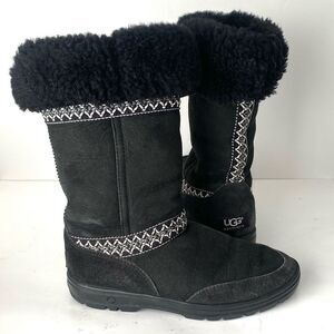 WOMEN'S UGG SUNDANCE REVIVAL BRAID BLACK TALL BOOT Sz 6 Boho Western Winter