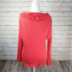 WOMENS VAN HUESEN STUDIOE BUTTON UP CARDIGAN SIZE XL RUFFLE COLLAR DEEP ROSE
