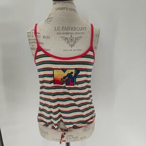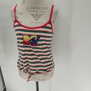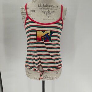 WOMENS VINTAGE MTV STRIPED Y2K BABY TEE TANK TOP SIZE LARGE FRONT TIE