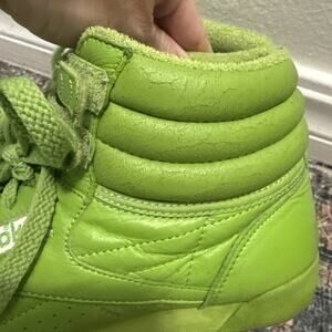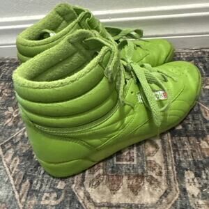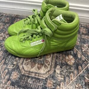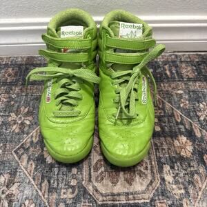 WOMENS VTG 1980’s REEBOK FREESTYLE CLASSIC HIGH TOP LIME GREEN AROBIC SZ 7 USA