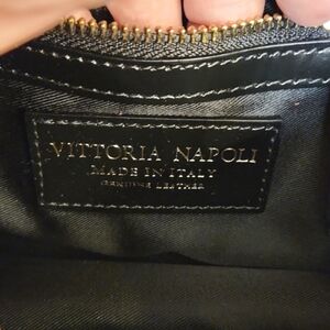 Womens beautiful Vittoria Napoli genuine leather Made in Italy shoulder bag. Comes with matching leather keychain that can be put on bag if you'd like. Gold hardware & chain straps. Unique button lock closure. Snakeskin print along with a Burnt Sienna & dark teal bottom & sides. Black strip on top of bag. One small zippered compartment inside. Bag is in beautiful like new barely used condition!