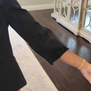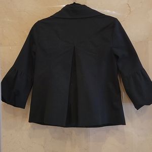 Stunning jacket by White House Black Market. Extremely stylish, comfortable and easy to wear. Classic black that pairs well with everything! Features covered snap closure. Babydoll sleeves. I had a professional seamstress cut out a piece of the back and sew in a decorative piece inside the pleat.Worn just a handful of times & in great condition. Absolutely no holes or tears. A few, light marks that I was unable to capture an image of. Purchased for $150+tax. Buy it here for a FRACTION of that!