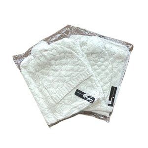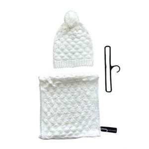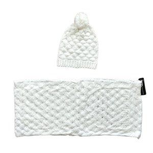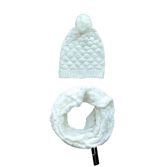 WOMENS WHITE LIGHT WEIGHT KNITTED BEANIE & INFINITY SCARF SET - SZ: OS
