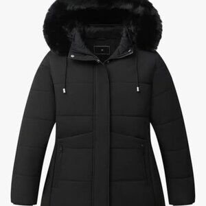 WOMENS WINTER COAT WATERPROOF WARM DOWN COAT DETACHABLE HOOD PARKA JACKET - BLACK