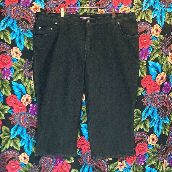 WOMAN WITHIN WOMENS PLUS SIZE 20W BLACK CROPPED CAPRI JEANS " INSEAM