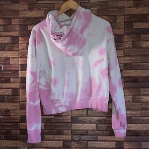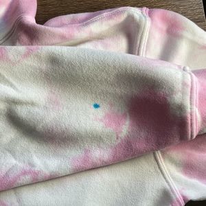 Pre owned womens XXS WSLY Ecosoft Classic Hoodie in Washed Orchid Tie Dye small hole in the front WSLY logo & ink stain on back right arm check pics please