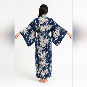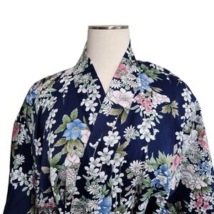 WOMEN'S YUKATA ROBE JAPANESE SUMMER KIMONO CHERRY BLOSSOM NAVY OS