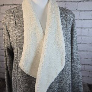 WOMENS Z SUPPLY KNIT JACKET SHERPA LINING GRAY WATERFALL COLLAR NWT SIZE L