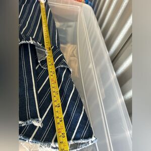 WOMEN'S ZARA DENIM RUFFLE HIGH LOW SKIRT white striped asymmetrical size xs