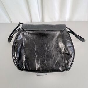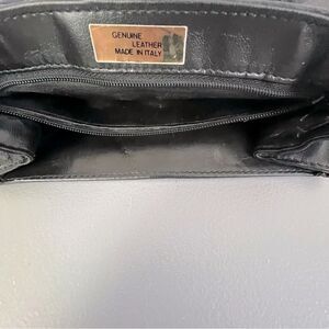 Pre-owned women’s black leather shoulder purse. Strap is approximately 46”. Not adjustable, but it can be knotted to size. Zipper works inside and so does snap to close purse Outside doesn’t have any significant marks on it but has normal wear. Still vibrant. Lightweight. Made in Italy 🇮🇹