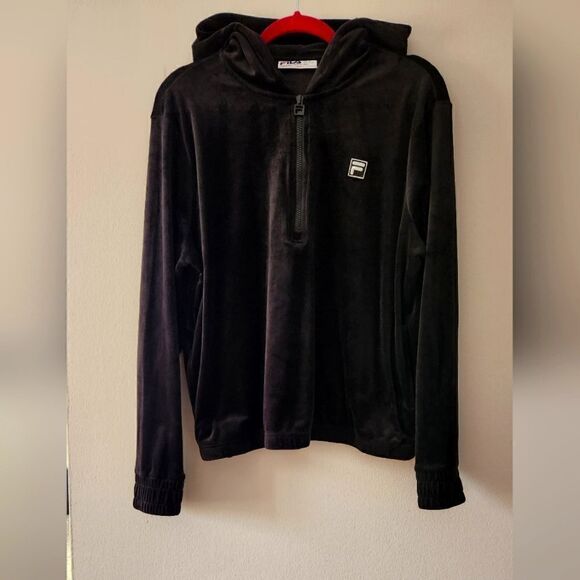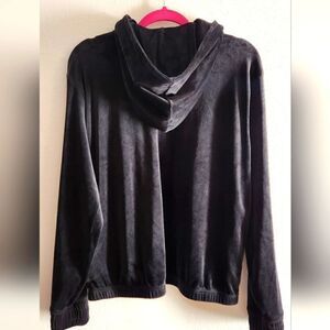 WOMEN'S BLACK VELVET HOODED SWEATER JACKET BLACK ZIPPER SIZE XL