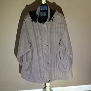 WOMEN’S~FORECASTER SPORT~BROWN~FULL ZIP & SNAPS COAT WITH NON-REMOVABLE LINING~2 SLANT OUTSIDE POCKETS~1 INSIDE POCKET~SNAP CUFFS~REMOVABLE HOOD~KNEE LENGTH JACKET~NO HOLES~NO TEARS~VERY GOOD USED CONDITION~FIRST PICTURE TRUER COLOR