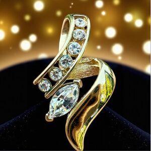 ✨ A bold and glamorous statement piece designed to shine from every angle. This gold-tone pendant necklace features a fluid, sculptural swirl design accented with sparkling round crystals and a striking marquise-cut stone at the center. Elegant yet versatile, it’s the perfect touch of chic for day or night.