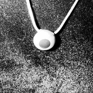 This is a cute necklace. It is silver with black in the middle. It has been gently worn.