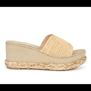 A wedge slide that that brings ease and an air of luxury, the Ariadne by Torgeis carries a light feeling of sophistication despite the added height and woven sole padding, making any casual day a photo-ready one.