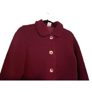 WONDER NATION Girls Size XL 14-16 Maroon Dark Red Teddy Bear Jacket Button front with tortoise colored round buttons 2 large front pockets Lined Condition: Good preowned condition. No rips, stains or tears. Size: Girls XL 14-16 Measurements (approximate): Length: 22" Chest (armpit to armpit): 19.5" Sleeves: 20"