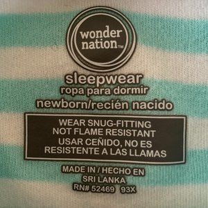 WONDER NATION Mermaid Girl's Sleeper, Turquoise & White Stripes, Size: Newborn