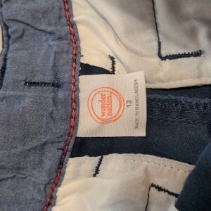 Wonder Nation flat front shorts size 12 with front and back pockets and an adjustable waist. with it on adjusted the waist measures 12 in, the rise measures 9 in, and the inseam measures 8 in
