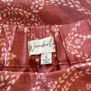 WONDERLY, NWOT, WOMENS FULL LEG, PULL-ON PANTS. WIDE WAISTBAND, ELASTICIZED IN BACK. SOFT PLEATS ACCENTUATE THE WAIST. SIDE POCKETS, FULLY LINED, DUSTY ROSE COLOR. SIZE S