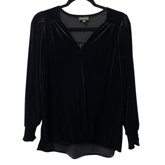 WONDERLY VELVET BLOUSE FAUX WRAP SIZE XS RELAXED FIT HOLIDAY CHIC BLACK CLASSIC
