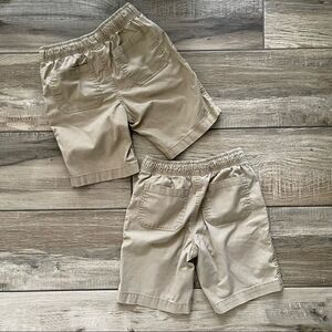 These are GREAT khaki uniform shorts! Easy pull on style with drawstring waist. Pre-loved in good condition- 1 pair has a tiny wear spot on the front (picture included). These are labeled as a size medium 8 but I would say that they best fit a 7/8.