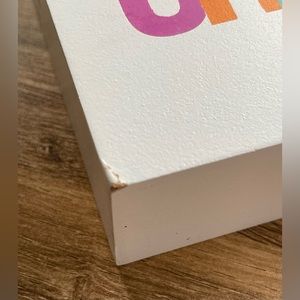 5”x7” wood box sign with the message “It’s going to be a GREAT DAY”. Nice colorful design to dress up any space! There are a few marks of dark spots, from storage, and one corner has a bit of damage, but could be touched up or repainted in those spots. Smoke free environment.