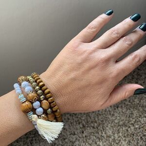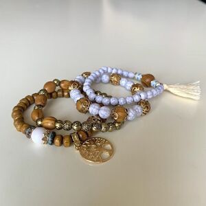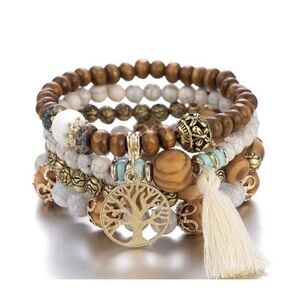 WOOD Beads Charm Bracelet 4 layers! Super Awesome NEW Same Day Shipping