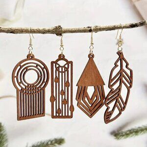 WOOD Cut Out Earrings Tribal Unique Artistic LIGHTWEIGHT Dangle Jewelry