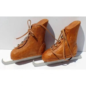 Add a touch of rustic charm to your Christmas décor with these distressed wood ice skates. The skates feature rawhide ties and are perfect for hanging on your holiday wall. Made of high-quality wood, these skates are durable and will last for years to come. Whether you're looking for a unique gift for a loved one or just want to add some festive flair to your own home, these ice skates make a great choice. Their distressed look gives them a charmingly rustic appeal, while the rawhide ties add a touch of elegance. So why wait? Order yours today and get ready to hit the ice this holiday season!