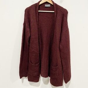 WOODEN SHIPS Burgundy Open Cardigan Pockets Wool Cabincore Size Medium Large