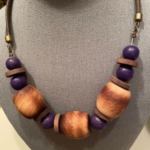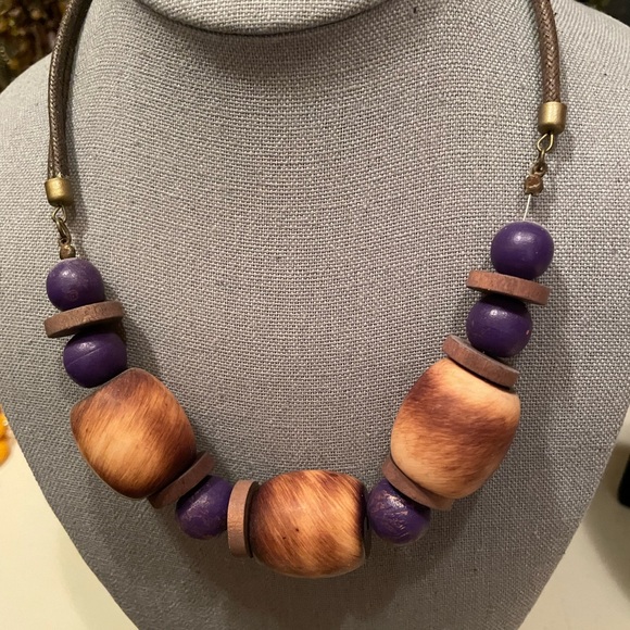 Beautiful wooden beads in shades of brown with purple accents. A great addition for a savvy dresser!